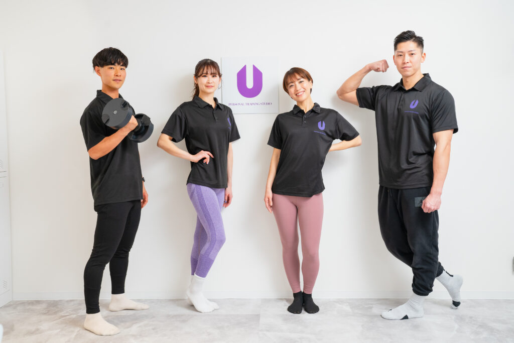 パーソナルトレーナーとして結果を出し続けるためには、トレーニングの知識だけでは不十分で、お客様のお話にきちんと耳を傾けられる傾聴力やお客様ごとに異なる目標設定やそれに対する進捗管理能力、さらにお客様のトレーニングに対するモチベーションを維持したりするサポート能力に長けている事が多い傾向があります。 PERSONAL TRAINING STUDIO Uで現在活躍しているパーソナルトレーナーは、これらの事に長けているレベルの高いトレーナーが在籍しているため、レベルの高い環境でトレーニング指導をしたいという方にはピッタリな環境であるといえます。